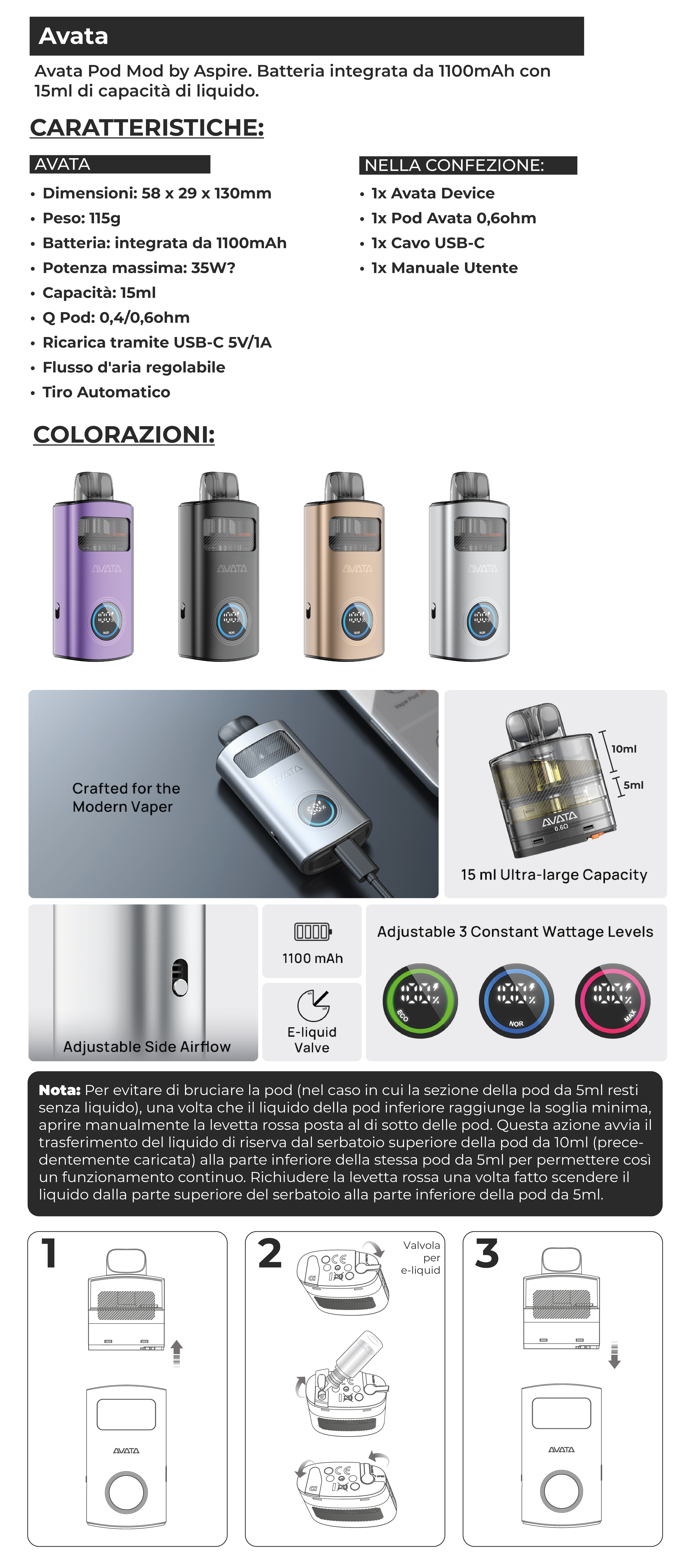 Avata Pod Mod Aspire. Avata Pod Mod by Aspire. Batteria integrata da 1100mAh con 15ml di capacità di liquido.